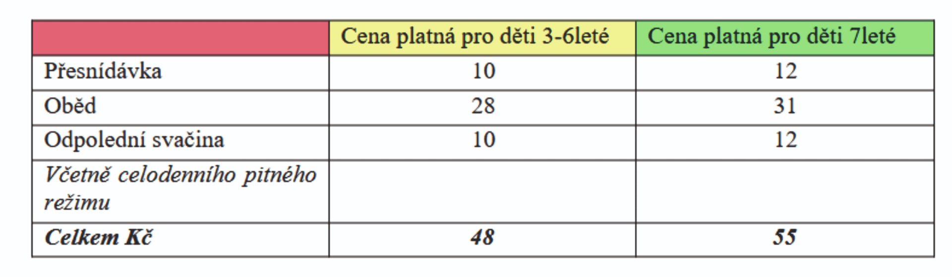 Vnitřní předpis o stanovení příspěvku na stravování v MŠ Štěpánka